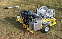 La machine convient tout particulièrement pour le tirage de Cordes (pose du câble de tirage), le calibrage ou le tirage de câbles souterrains ou en fibres de verre avec une force de traction de max. 12 kN. Grâce à l’entraînement hydraulique, la puissance maximale peut toujours être utilisée. Cela signifie qu’il est possible de travailler avec une vitesse faible et une force élevée ou inversement. La bobine avec entraînement direct permet de dérouler ou de tirer le câble manuellement jusqu’à 16 kN (1.6 To). Les roues amovibles facilitent le transport du treuil. La possibilité de changer rapidement la bobine avec un étrier permet une certaine flexibilité au niveau des tâches. Possibilité de déverrouiller la bobine pour tirer le câble sans démarrer le moteur. Conception standard